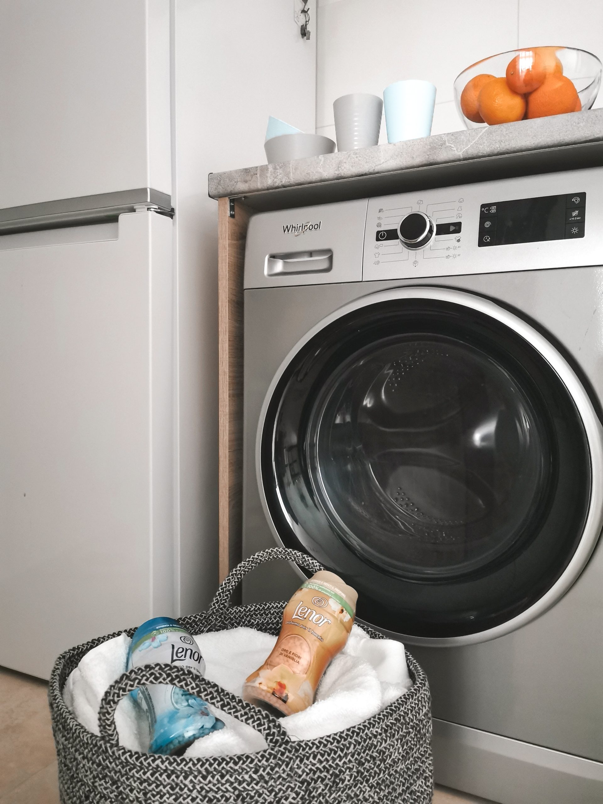 Prima oară am folosit perlele Lenor împreună cu balsam de rufe. Dar în următoarele dăți când am spălat cu ele, am renunțat la balsam și am folosit doar detergent și agent de decalcifiere a apei, pentru protecția mașinii de spălat.