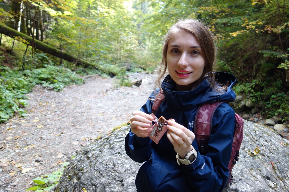Am destulă energie chiar și pentru un traseu de 3-4 ore, dar trebuie să recunosc că unul din secretele mele sunt batoanele cu fructe, alune și semințe. Sunt un fan înrăit al dulciurilor sănătoase, iar în ultimul traseu am fost însoțită de Roobar de la Republica BIO.
